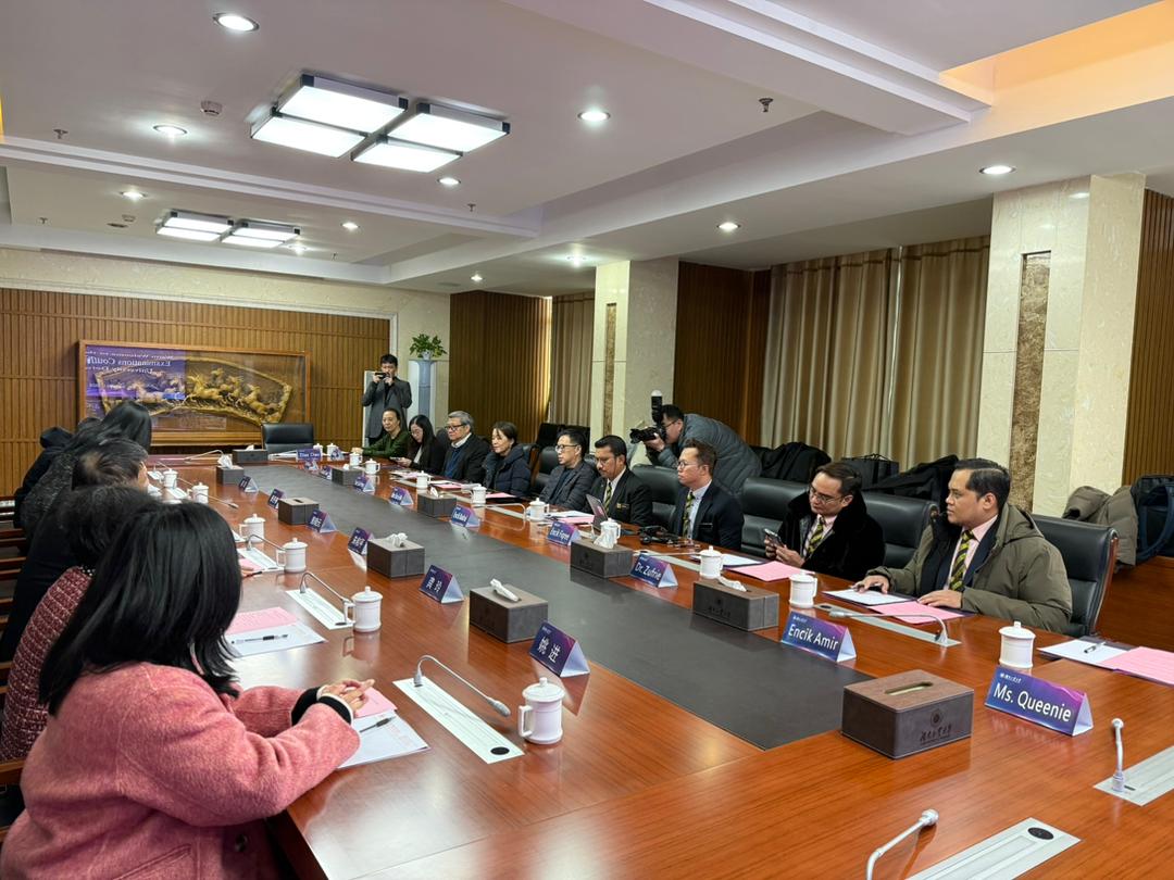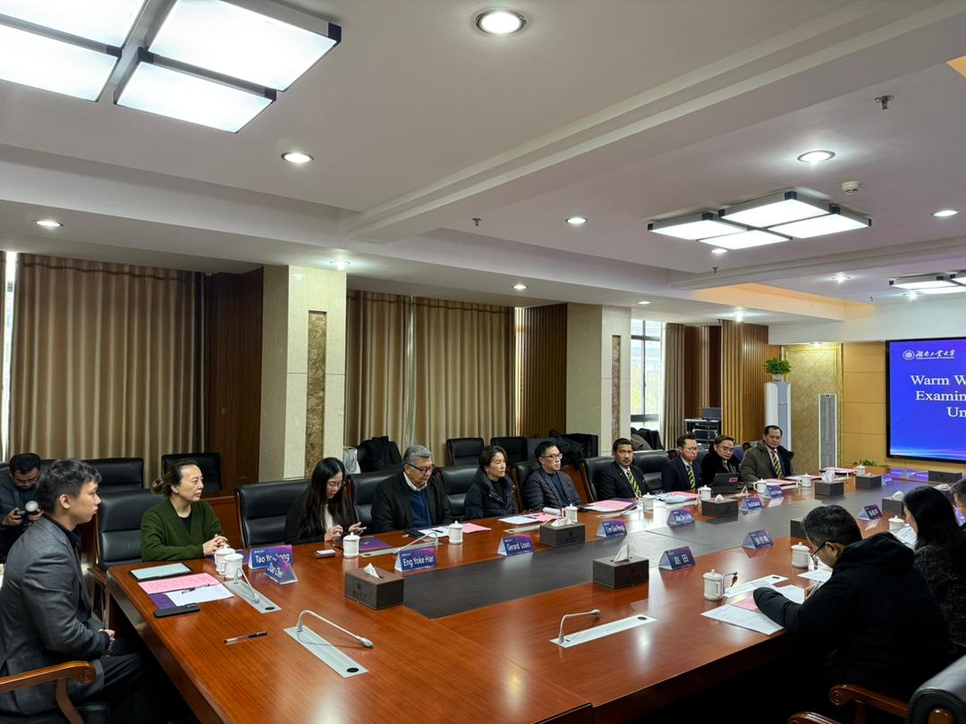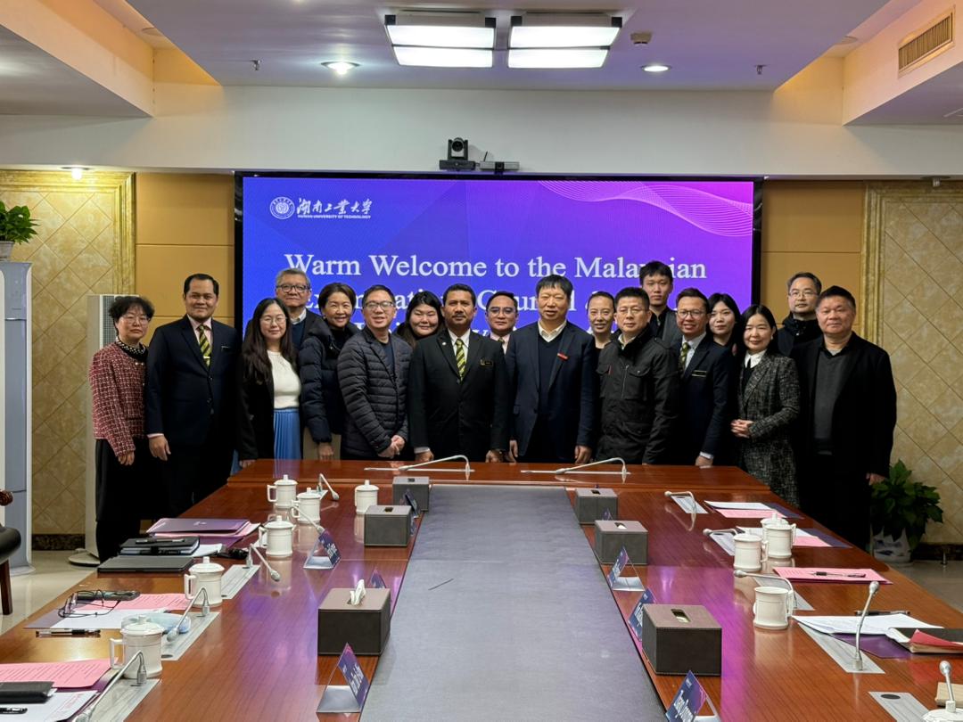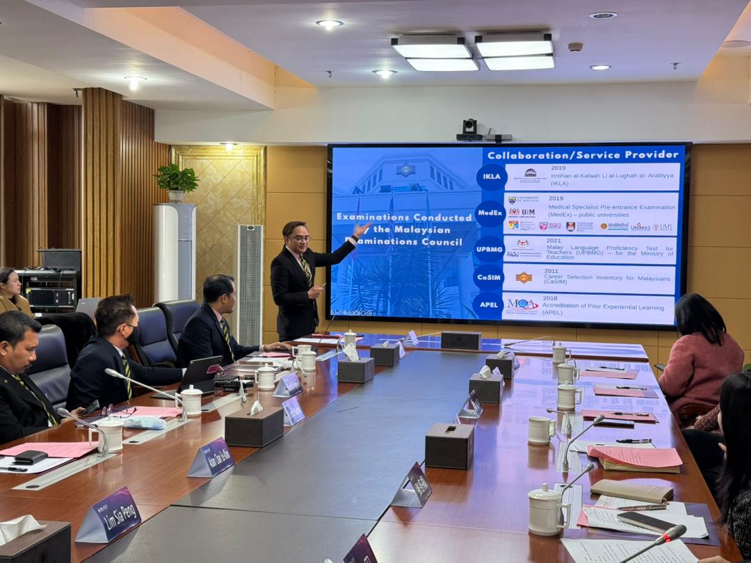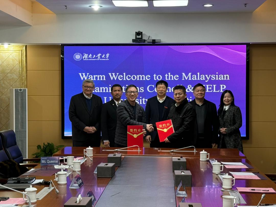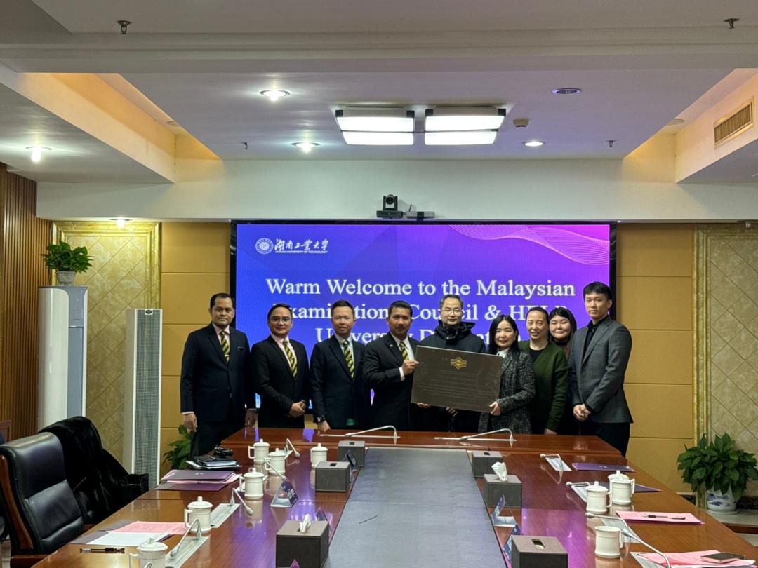 27 Januari 2026 (Selasa) - Ketua Eksekutif, Majlis Peperiksaan Malaysia (MPM) YBrs. Encik Badrul Hisham Bin Abdullah telah mengadakan mesyuarat dan perbincangan dengan Prof. Dr. Yin Xiaoyuan, Vice President of Hunan University of Technology (HUT), Prof. Dr. Zhang Dongmei, Director, Office of International Cooperation and Exchange HUT, dan Mr. Zhu Heping, Dean, School of Packaging Design and Art HUT dengan kerjasama Elite Empowerment Centre Sdn. Bhd. bagi tujuan mengelolakan Ujian Malaysian University English Test (MUET) dan Latihan MUET di wilayah Hunan, China.
