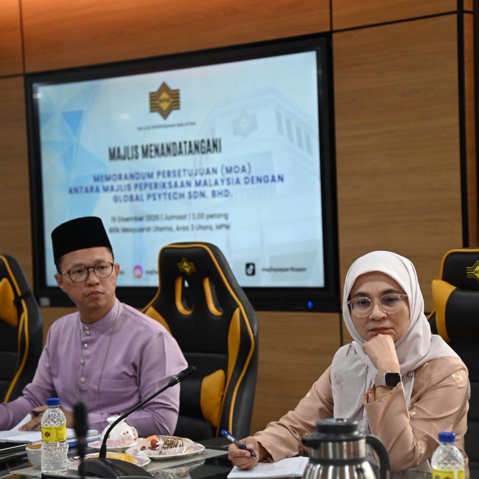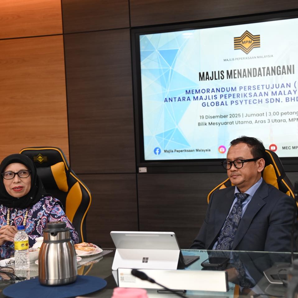 19 Dis 2025 (Jumaat)- Majlis Peperiksaan Malaysia telah mengadakan Majlis Menandatangani Memorandum Perjanjian (MoA) bersama Global Psytech Sdn. Bhd. melalui kerjasama strategik yang bertujuan memperkukuhkan sistem pentaksiran serta meningkatkan kecekapan dalam penyampaian perkhidmatan.