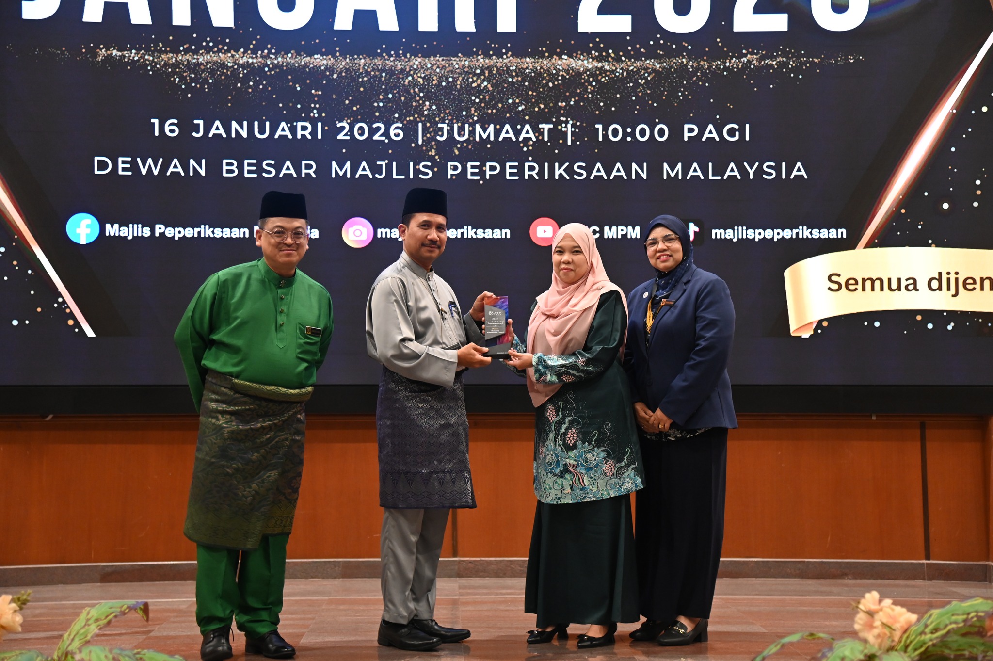 16 Januari 2025 (Jumaat) - Perhimpunan Bulanan Majlis Peperiksaan Malaysia (MPM) bagi Bulan Januari 2026 telah dilaksanakan dengan jayanya bertempat di Dewan Besar Majlis Peperiksaan Malaysia, pagi ini.